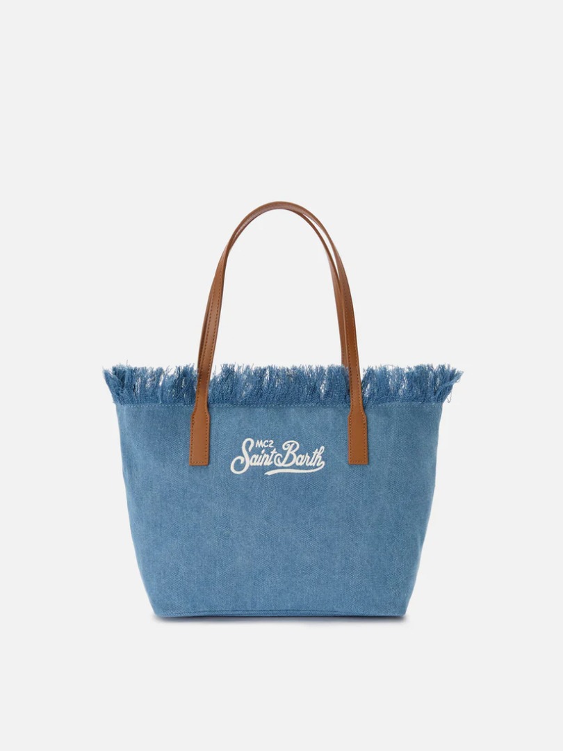 Get into the summer spirit with the MC2 Saint Barth Vanity cotton bag. It's very large and roomy, perfect for storing all your beach essentials. It features two practical handles, bright rhinestones, and a fringed hem that adds a boho-chic touch. Dimensions: 40 x 32 x 20 cm. Zipper, Fringes, Embossed logo, Rhinestones, Internal pockets, Handles, Lined interior.