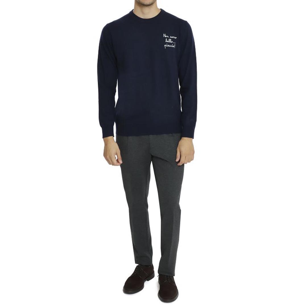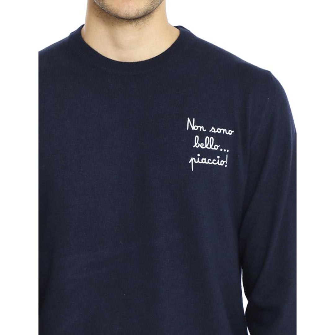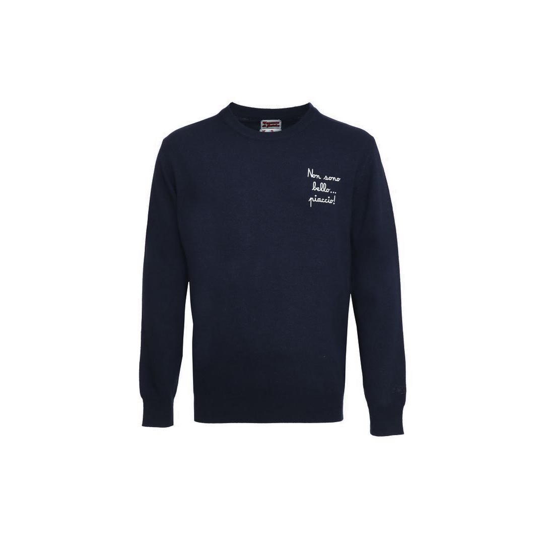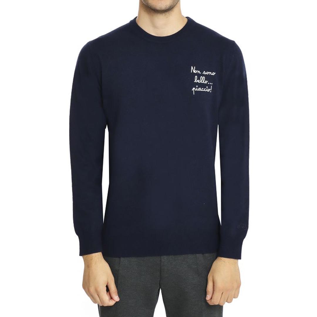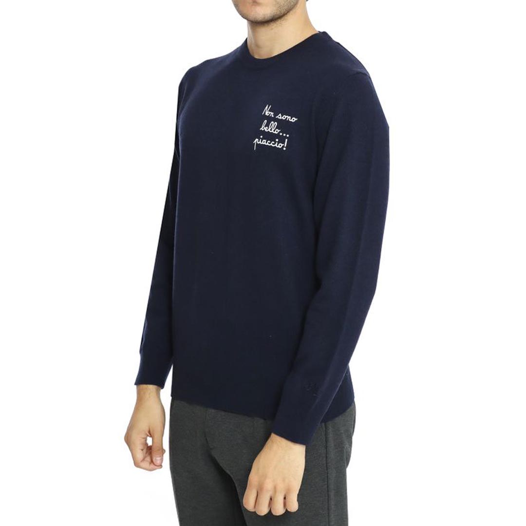 Crew neck sweater with heart stitch embroidery "I'm Not Handsome". I like the Heron model from the limited edition "Vacanze di Natale" collection for men by Mc2 Saint Barth. Crew neck sweater in wool blend. Heart stitch embroidery "I'm Not Handsome". I like the Heron model. Sweater from the limited edition "Vacanze di Natale" collection by Natal3. Tone-on-tone embroidered logo on the wrist. Ribbed collar, hem and cuffs. Regular fit.