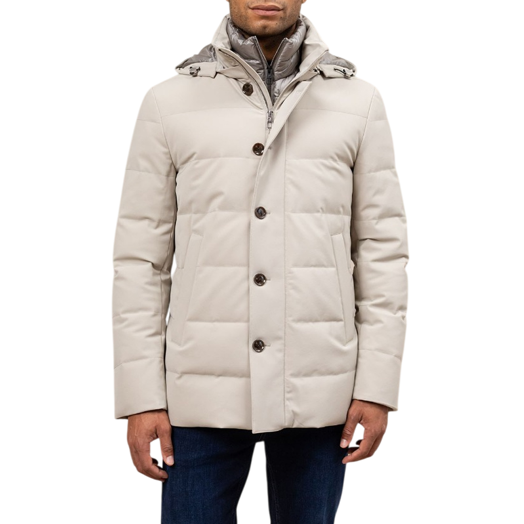 This Montecore men's jacket is a must-have, designed to combine style and functionality. Crafted with high-quality down padding, it ensures exceptional comfort and optimal protection from the cold. Its distinctive feature is the detachable inner bib, a detail that offers unique versatility: you can wear it for a more protective layered look or remove it for a cleaner, lighter style. The elegant and refined design makes this jacket perfect for a variety of occasions, from leisure time in the city to a more formal outing. A must-have for the modern man seeking a balance between sophistication and practicality.