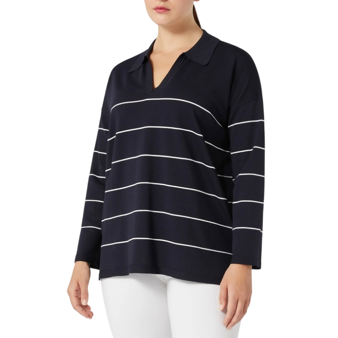 Versatile elegance for the stretch viscose sweater with polo neck. It is worked in plain weave with links stitch details. The garment is part of the Persona by Marina Rinaldi collection. Stretch viscose Straight line Polo neck with collar Long sleeves Link stitch details