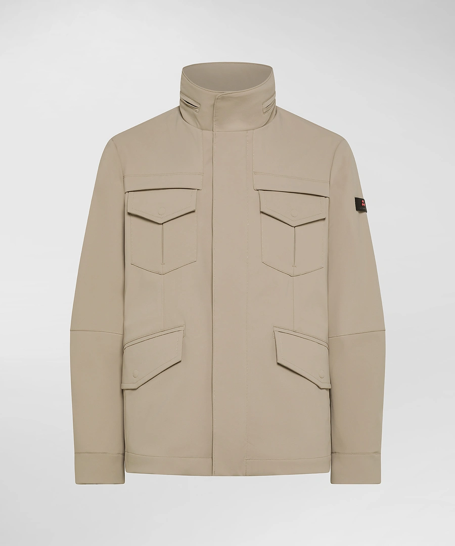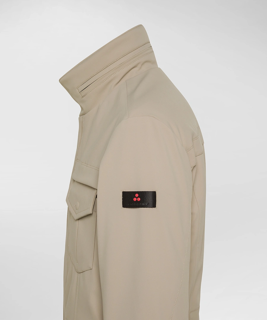 Technical fabric jacket with natural padding. The garment has a matte surface, a structured yet soft feel; it is water-repellent thanks to the PFC Free treatment that does not use chemicals that are harmful to the environment. The model reinterprets the military field jacket with a versatile metropolitan look, in full Peuterey style. High collar with extractable hood. Hidden fastening with double-slider zip and press studs, also present on the cuffs and on the flaps of the four pockets, internal welt pocket. A garment designed for action and movement, with technical fabrics and functional details. Length: medium High collar with extractable hood In polyester microfibre Water-repellent with PFC Free treatment