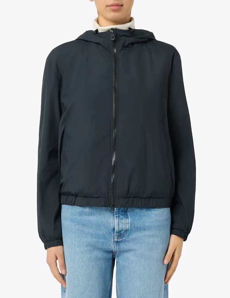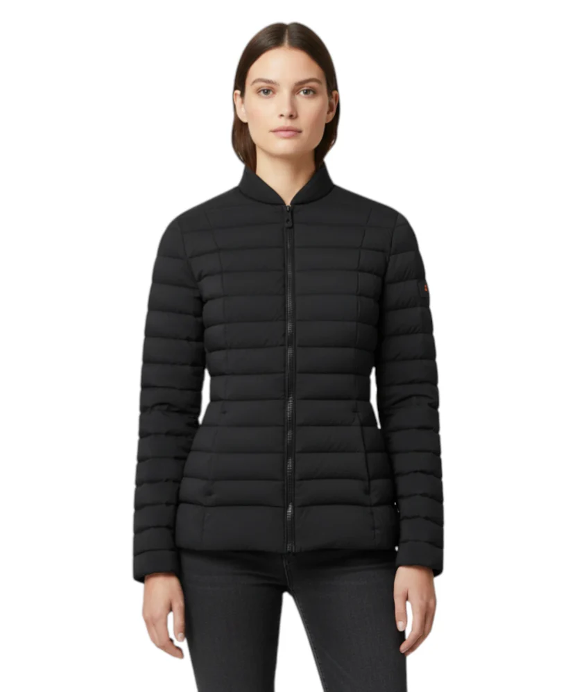 Long and quilted down jacket in double fabric: the first in bi-stretch matt down proof stretch canvas, the second in light cotton jersey, like neoprene, with a smooth and fluid hand. The two materials give the garment comfort, lightness and volume at the same time. Full central zip and side pockets, wide collar edged in fox fur. The essential design makes the model versatile: perfect with casual, formal and elegant combinations. Slim fit and water repellent. Slim fit