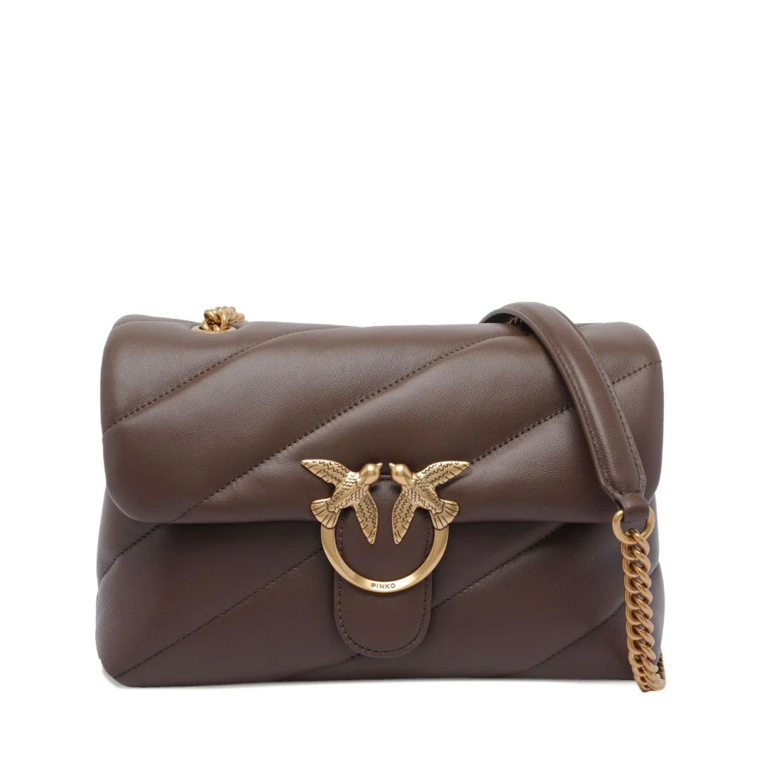 The Escape Bag medium bowling bag is crafted entirely from soft leather. Featuring an adjustable and removable leather shoulder strap and a double handle for carrying by hand or over the shoulder, this bag is extremely versatile and practical. It features a functional padlock that opens and closes with a key contained in the matching charm, while the small Love Birds logo plaque adds the finishing touch, embodying the brand's inimitable style. The top zip closure reveals a cotton-lined interior with a zipped wall pocket. Activate your PINKO bag: verify the authenticity of your product and access the personalized experience by holding your smartphone close to the Love Birds embroidery on the back of the bag! Height: 23 cm Width: 13 cm Length: 30 cm