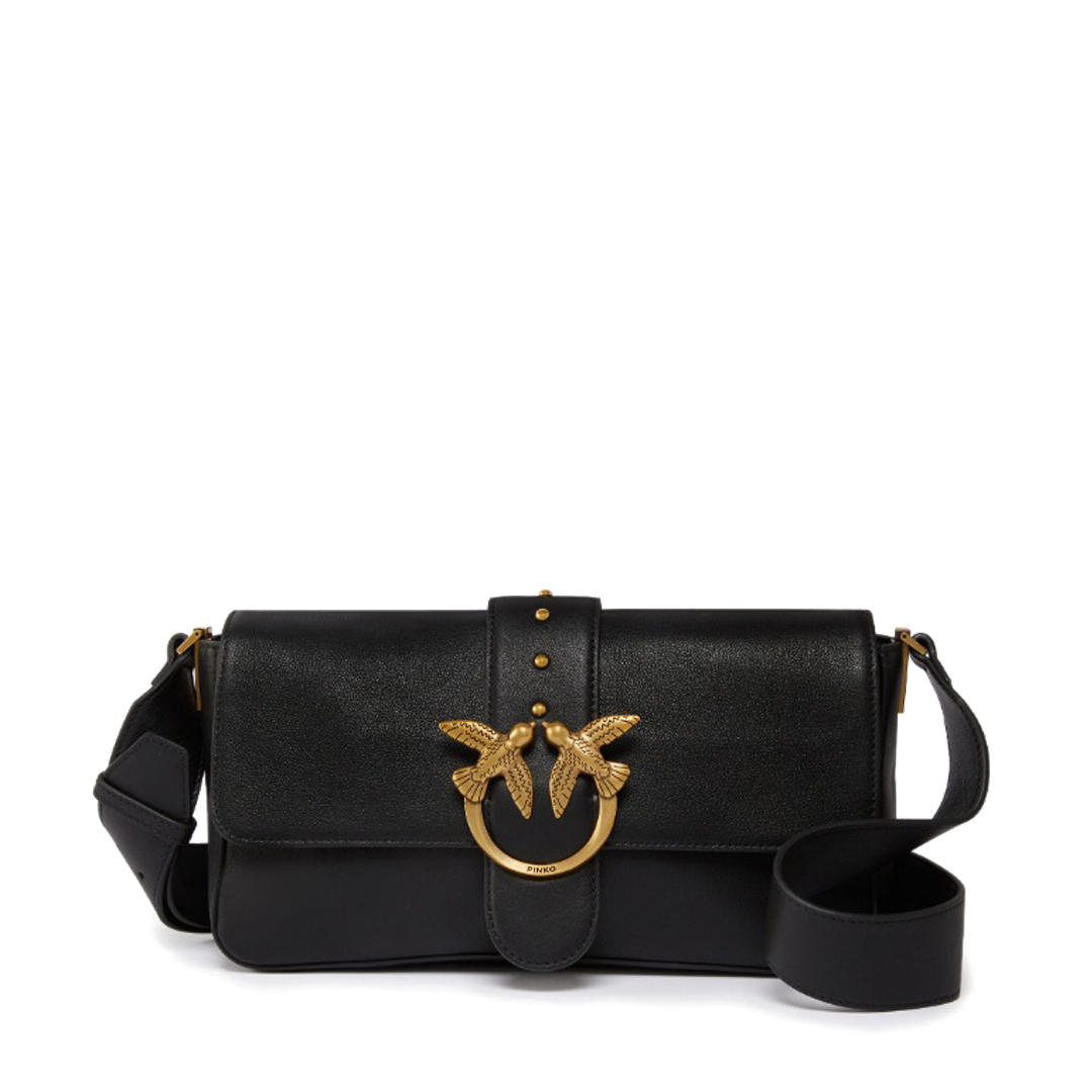 Mini Love Bag Slouchy small shoulder bag made of soft leather. The model features a double shoulder strap: a particularly versatile chain strap with an adjustable leather shoulder strap, and a more original adjustable leather strap decorated with sparkling rhinestones and metal chains. Gold and silver-tone metal details enhance the design, adding a sophisticated and bold touch, while the iconic Love Birds Diamond Cut buckle adds the finishing touch. The interior is lined in cotton drill fabric and includes a zipped wall pocket. Activate your PINKO bag: verify the authenticity of your product and access the personalized experience by holding your smartphone close to the Love Birds embroidery on the back of the bag! Height: 15 cm Width: 7 cm Length: 22 cm