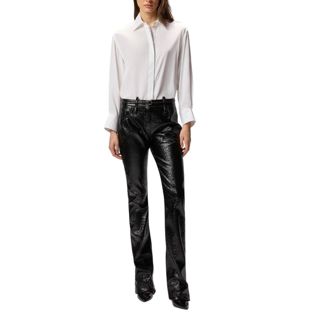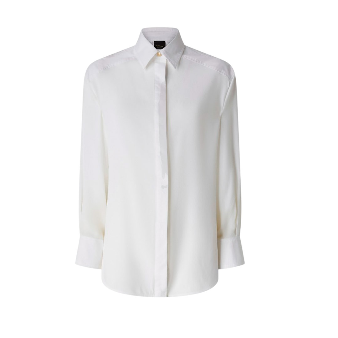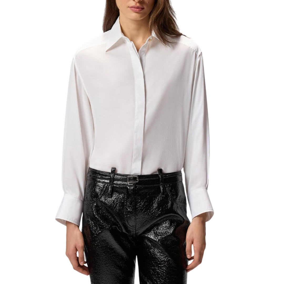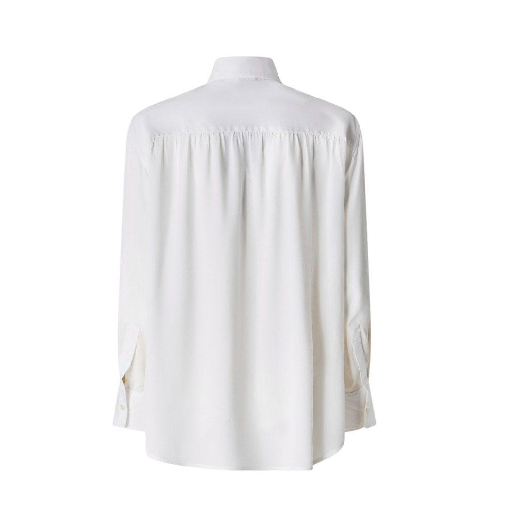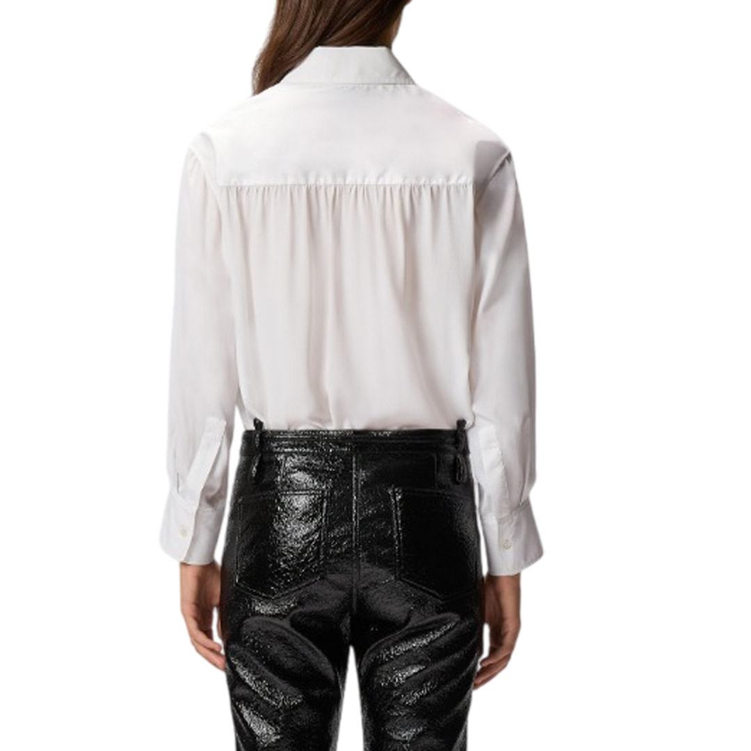 A classic shirt featuring a combination of a firmer-feel cotton poplin on the body and sleeves, and a more flowing crepe de chine fabric on the slightly gathered back panel. It features a point collar, long sleeves with cuffs, and a front button closure. Pair this shirt with jeans to elevate your everyday look with a feminine and original piece that won't go unnoticed.