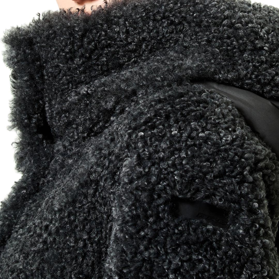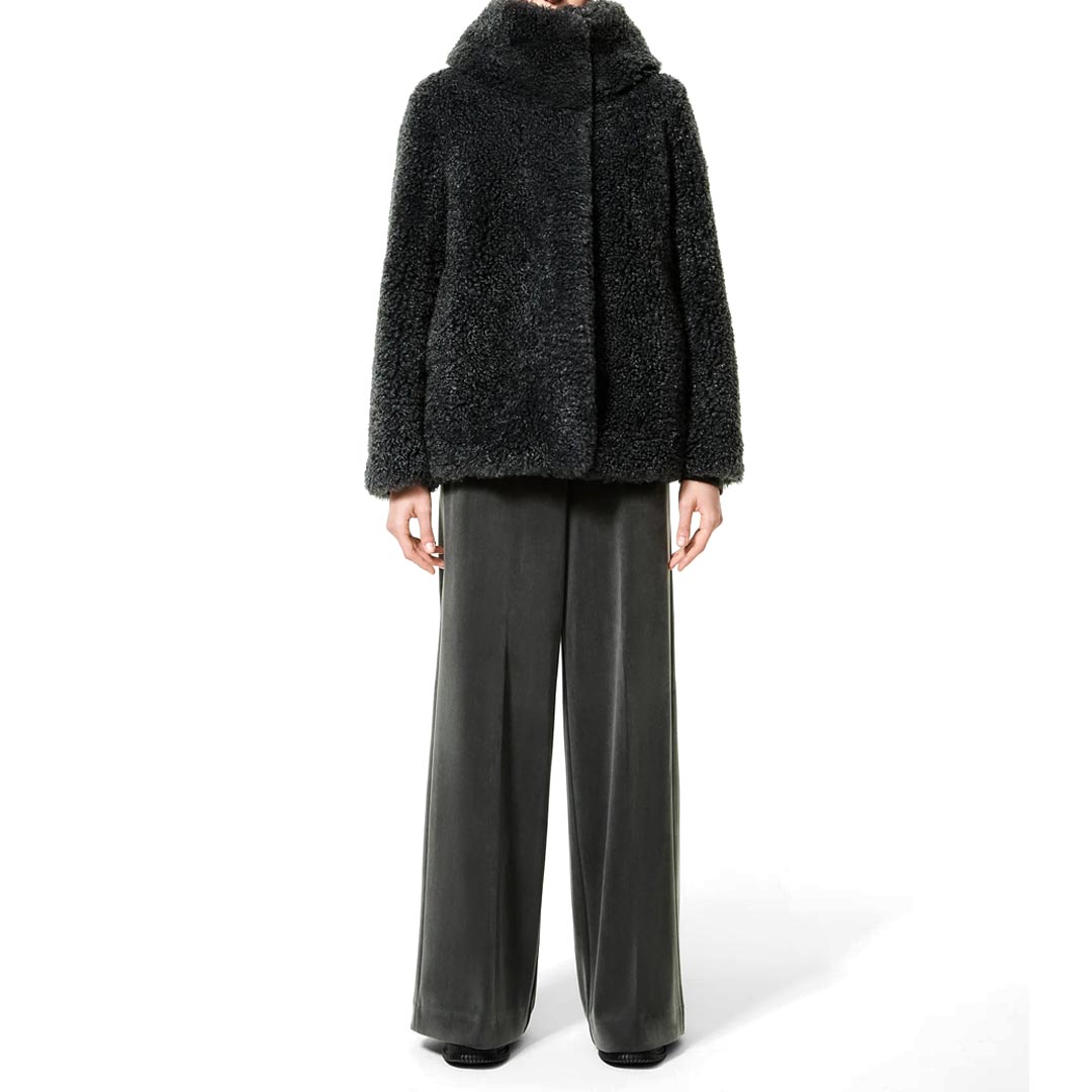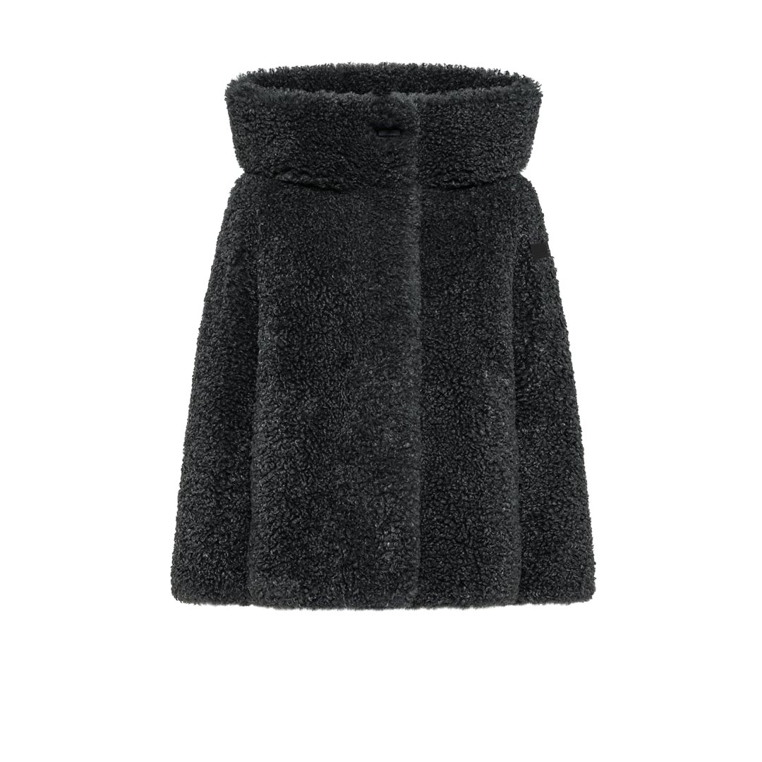 This versatile and distinctive outerwear piece stands out for its unique silhouette and construction of the front and sleeves, embellished with warm and enveloping faux teddy fur. The back features tubular channels containing the soft, warm duck down padding, offering exceptional comfort and lightness. The large, dramatic hood combines the two textures, enveloping the face and lending the design a unique and sophisticated allure. The hip-length design, invisible pockets, and concealed double-slider zip closure are the distinctive details that enhance its minimalist character and functionality. Perfect for a sporty-chic style, the Lamb Hybrid Hood Women's Jacket is the perfect way to elegantly face the coldest winter days.
