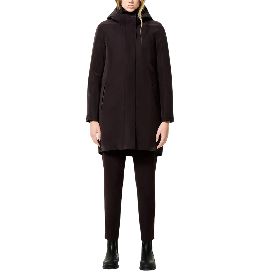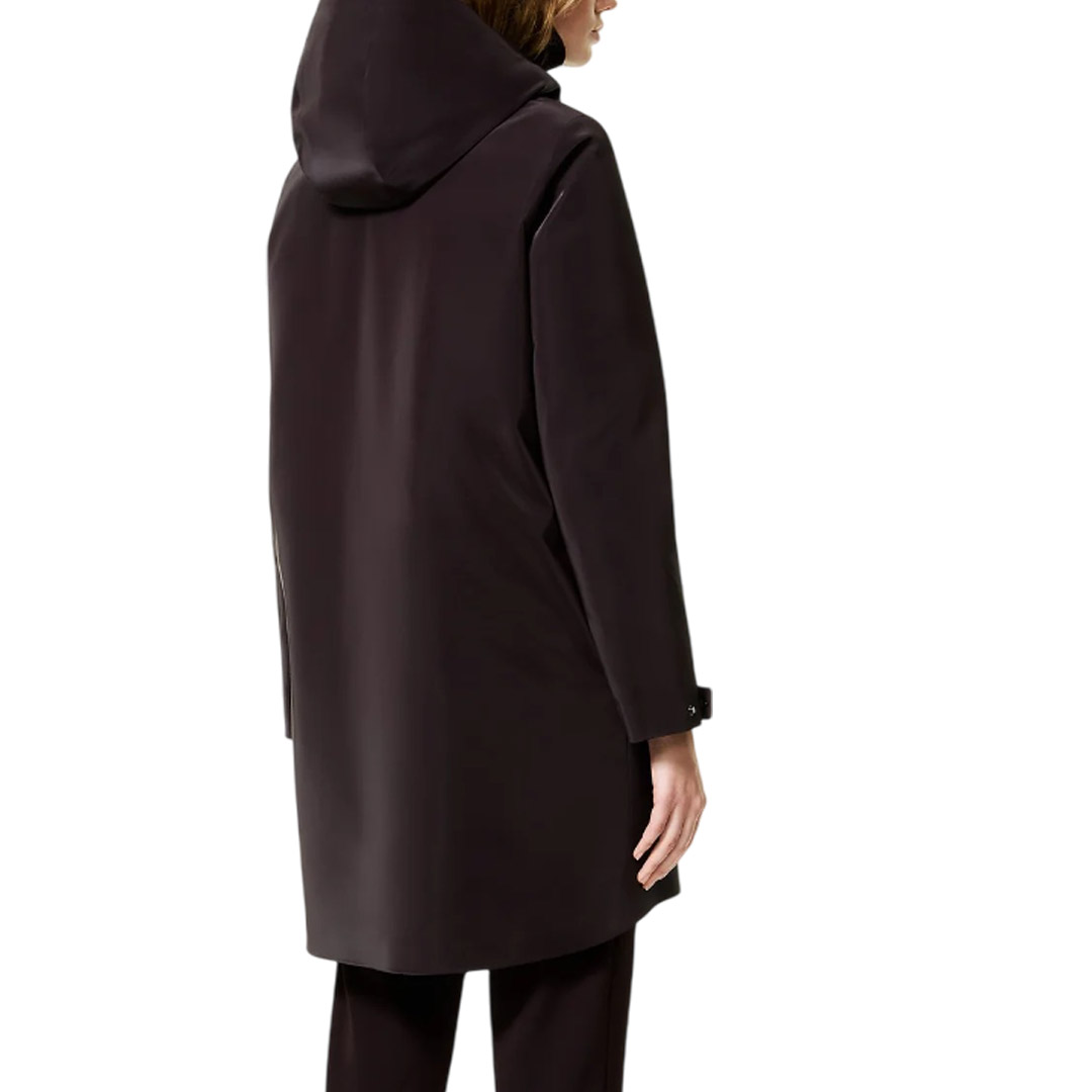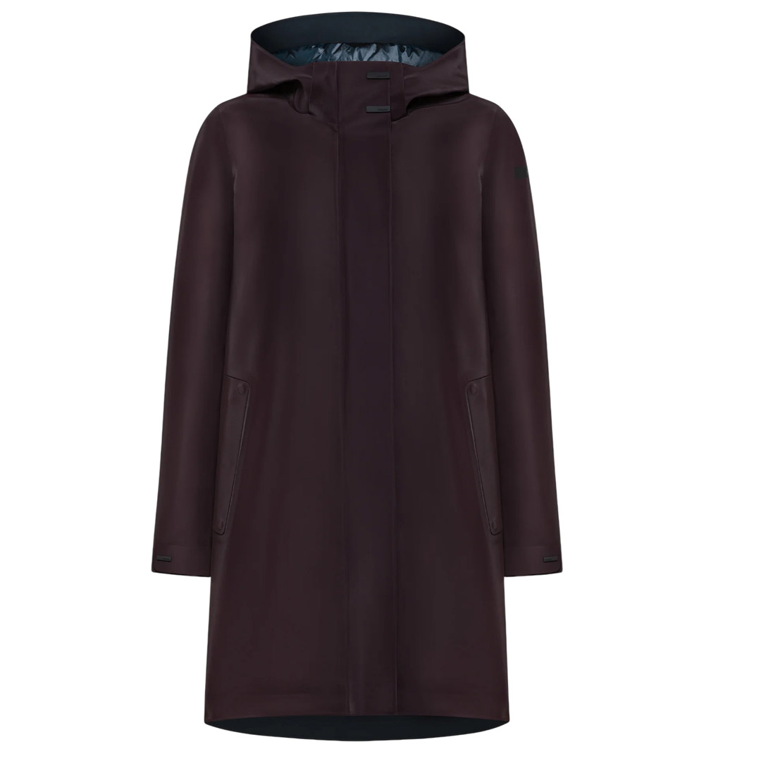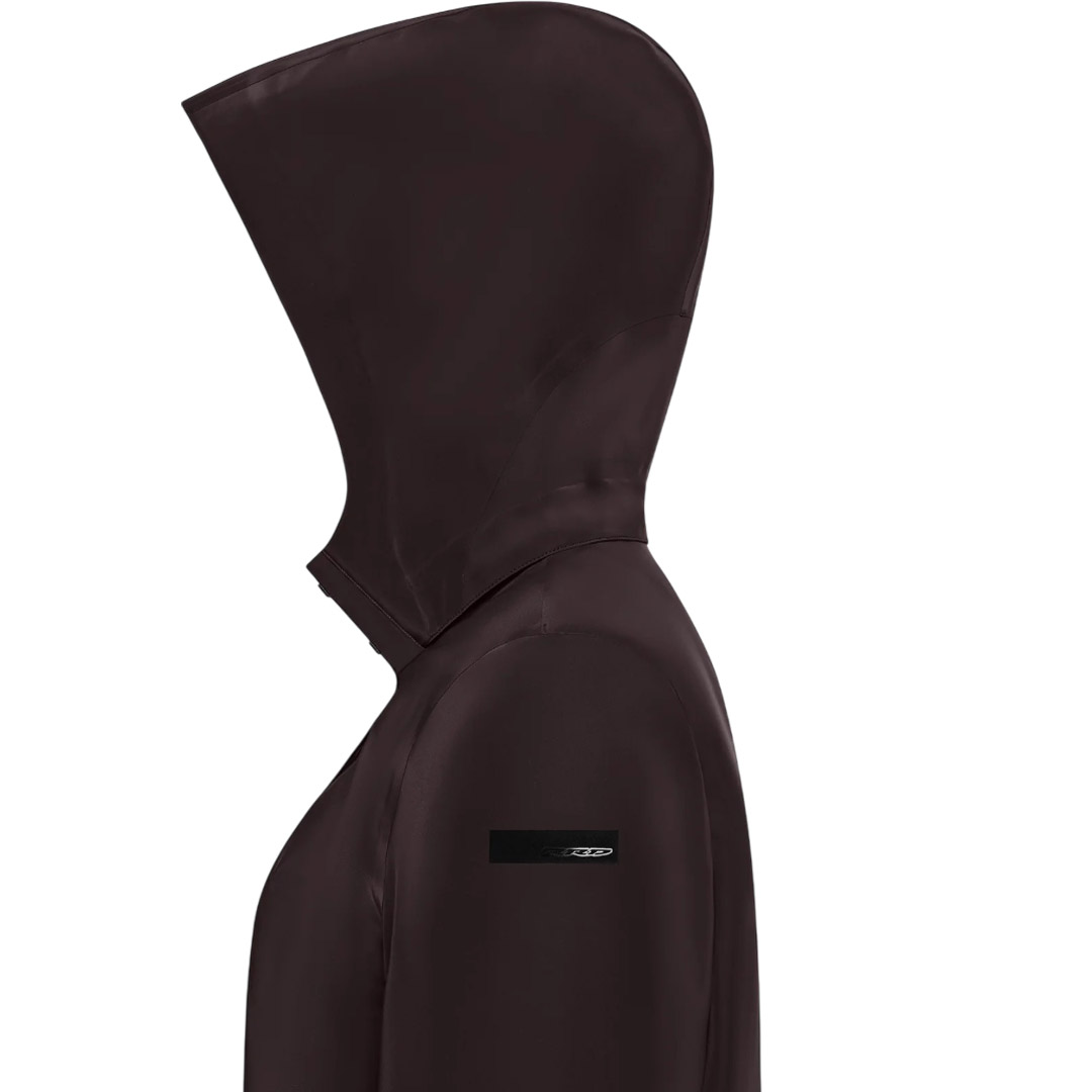 This mid-length outerwear piece is ideal for embracing the cold season with casual elegance. Crafted from silicone-coated fabric, the jacket has a pleasantly rubberized feel and a translucent look, enhancing its soft silhouette and creating captivating plays of light. The seamless construction ensures perfect insulation from rain and wind, while the interior features warm, soft 90/10 duck down padding, contained within the tubular channels of the innovative Floating Shield system, for an impeccable fit and comfort. The minimalist design is emphasized by the flap concealing the practical two-way zipper. The adjustable, padded, wraparound hood offers additional protection while gracefully highlighting the face. The black micro-injected logo on the left sleeve completes the look with an iconic touch.