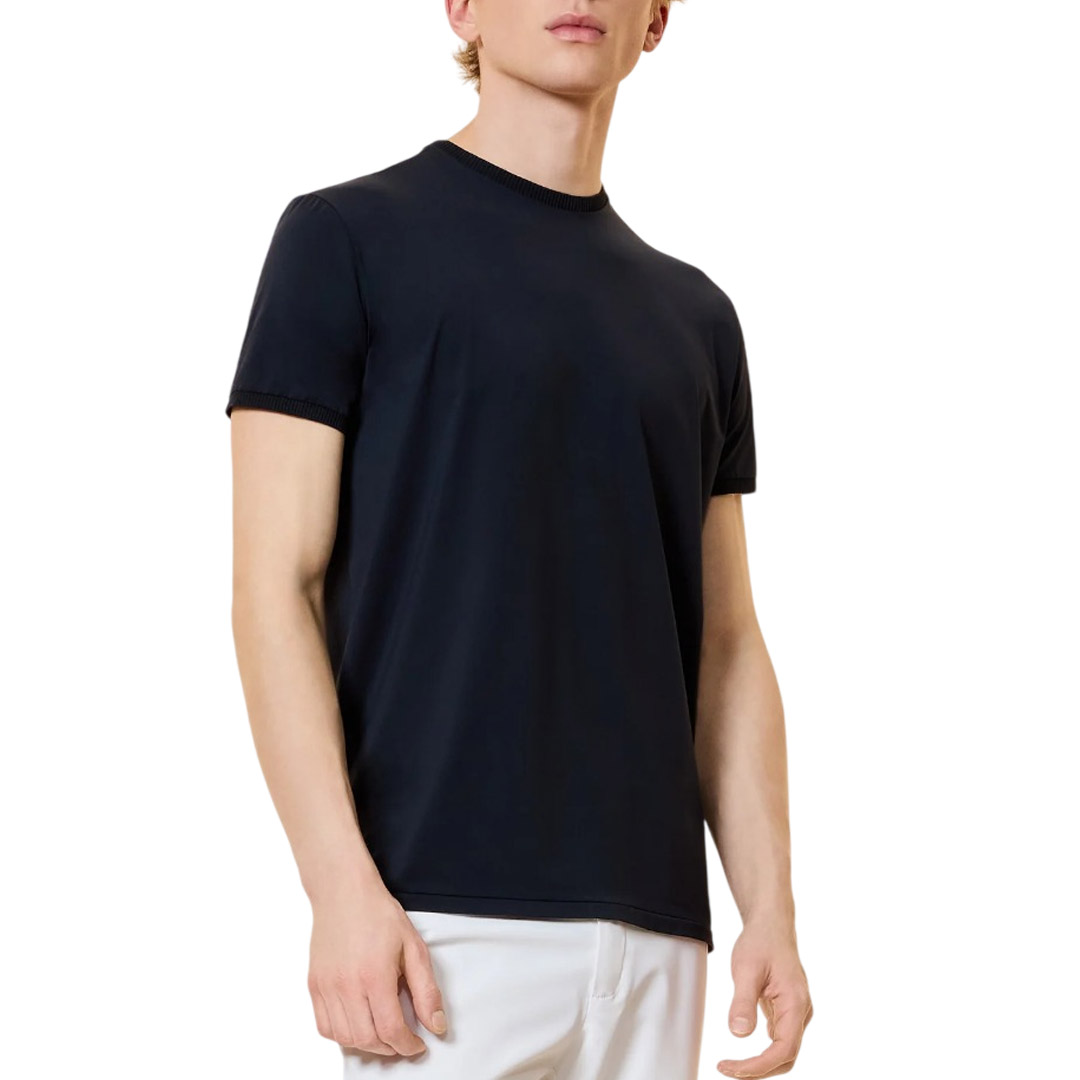 The soft, smooth feel of premium Oxford fabric distinguishes this monochrome T-shirt. The minimalist, timeless design is enhanced by the stretch ribbed collar and short sleeves in the same yarn, which defines the fit in a subtle play of contrasting textures. The cool, light, and delicately soft feel of the stretchy, breathable fabric are the added value of a garment that elevates informal elegance by completing casual and semi-formal looks, when worn under a blazer as an alternative to an Oxford shirt. The signature neon orange piping at the hem and the black micro-injected logo on the left sleeve add an additional touch of exclusive style to the T-shirt, available in a palette of vibrant summer tones.