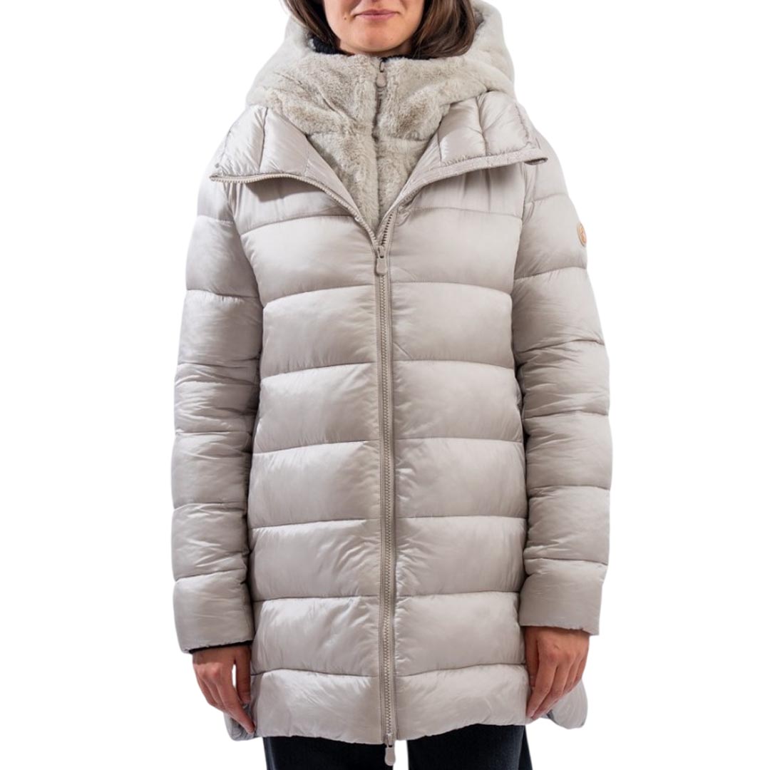 Short jacket made of faux fur. Features details such as a high collar, a two-way central zip closure, and an elasticated hem. Reversible with a horizontal quilting. Warm animal-free padding. Regular fit.