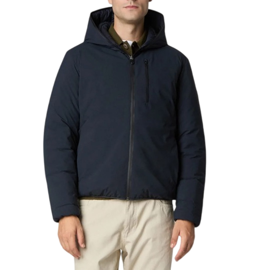 100% recycled nylon fabric, very lightweight and compact, with a soft, smooth feel. It offers excellent windproof performance thanks to its high-density construction. Its special finish gives it a silky, shiny appearance.