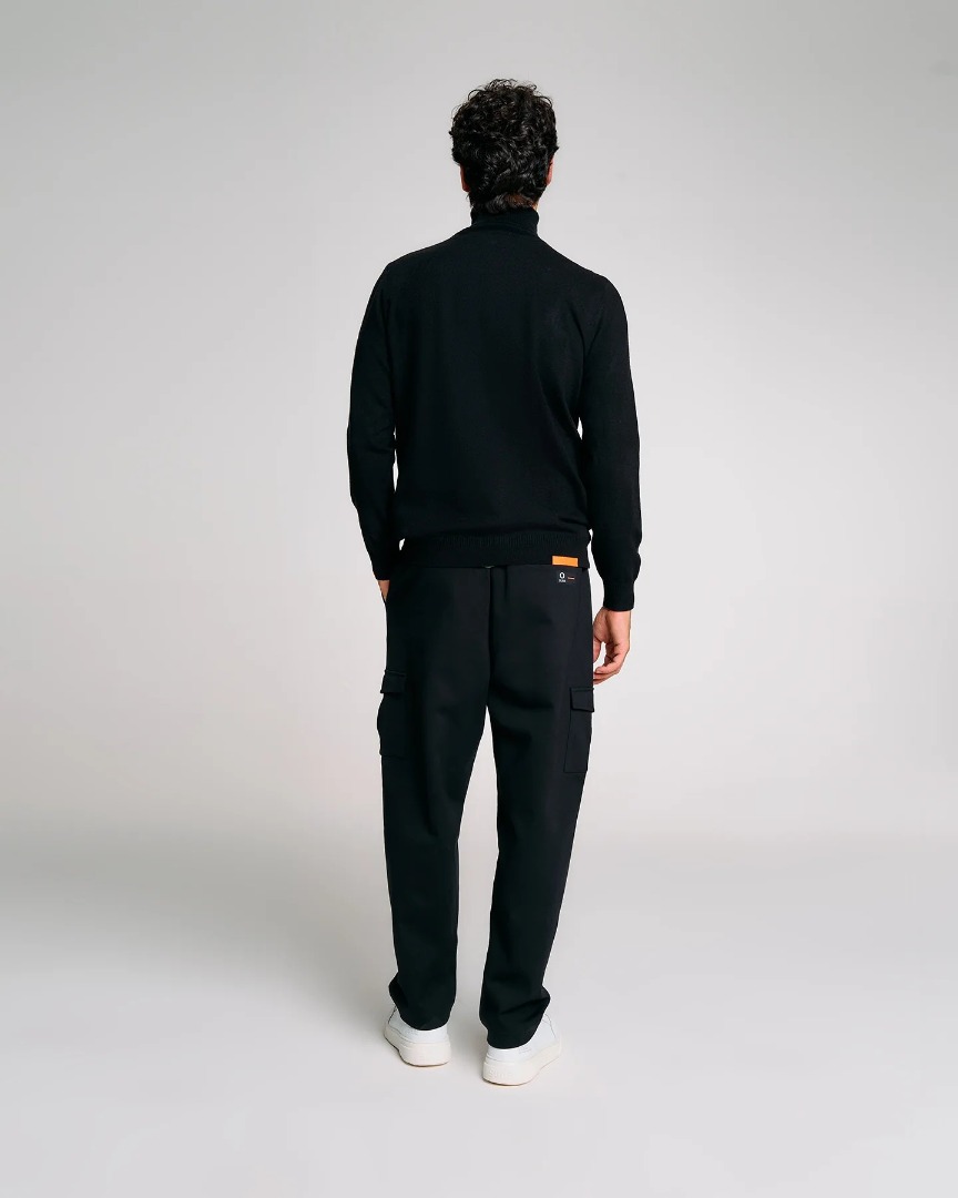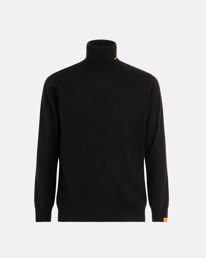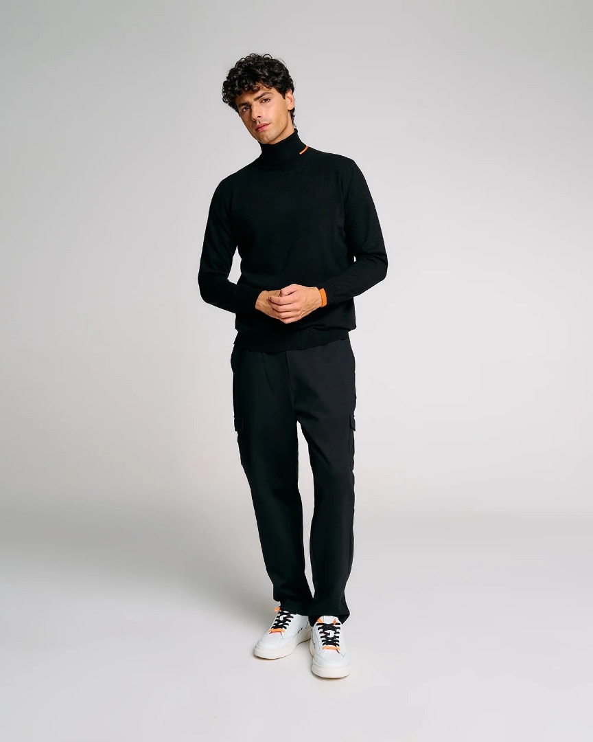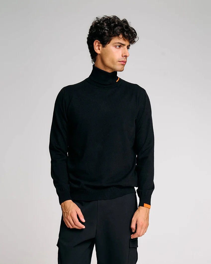 Men's turtleneck sweater with a high neck and clean lines, ideal for those seeking simplicity and comfort. The regular fit and minimalist design make it perfect to wear alone or under a jacket, while the orange Suns tag on the side of the neck adds a distinctive touch to the look. The fine workmanship and tone-on-tone details emphasize the functional elegance of this piece, designed to suit both casual and more refined settings.
