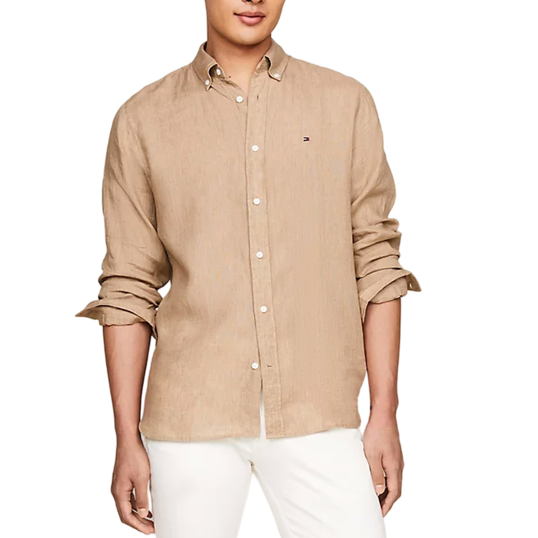 Enter the warmer months in style thanks to the button-down shirt, made of fresh pigment-dyed pure linen fabric. • Pure linen • Pigment-dyed fabric • Button-down collar • Iconic tape inside the collar • Monotype Hilfiger logo patch inside the placket • Tommy Hilfiger branding • Tommy Hilfiger flag embroidered on the chest • Regular fit