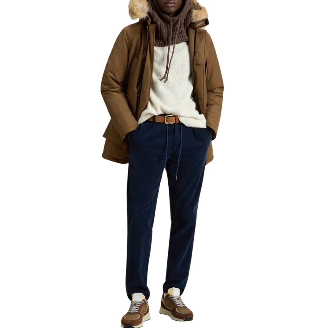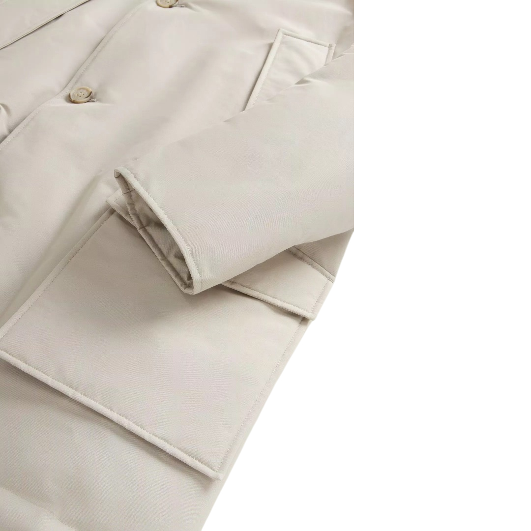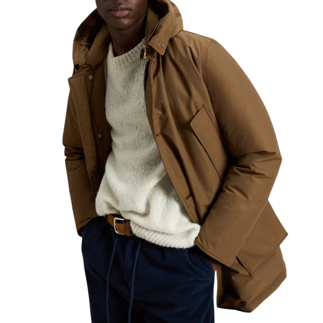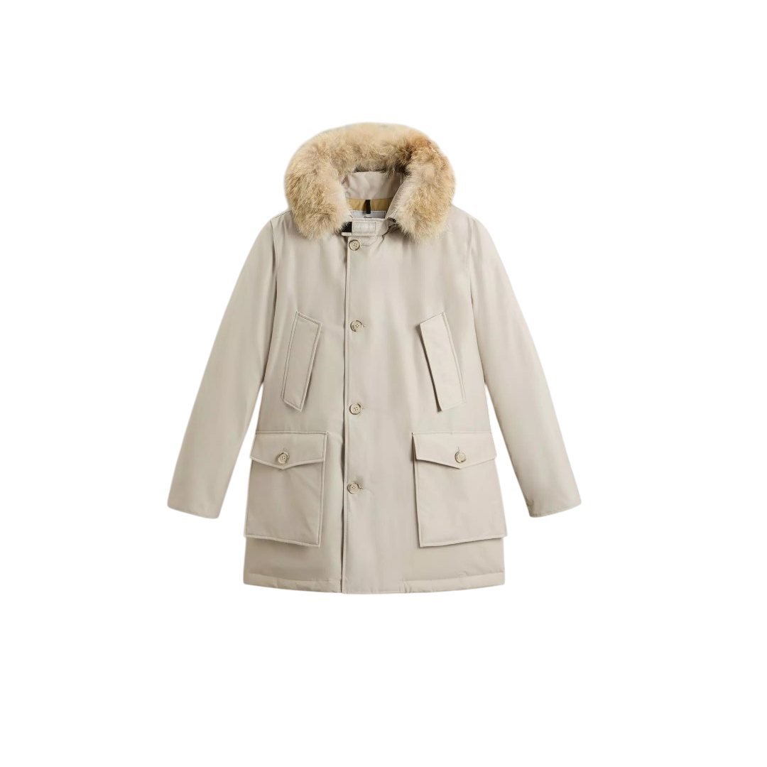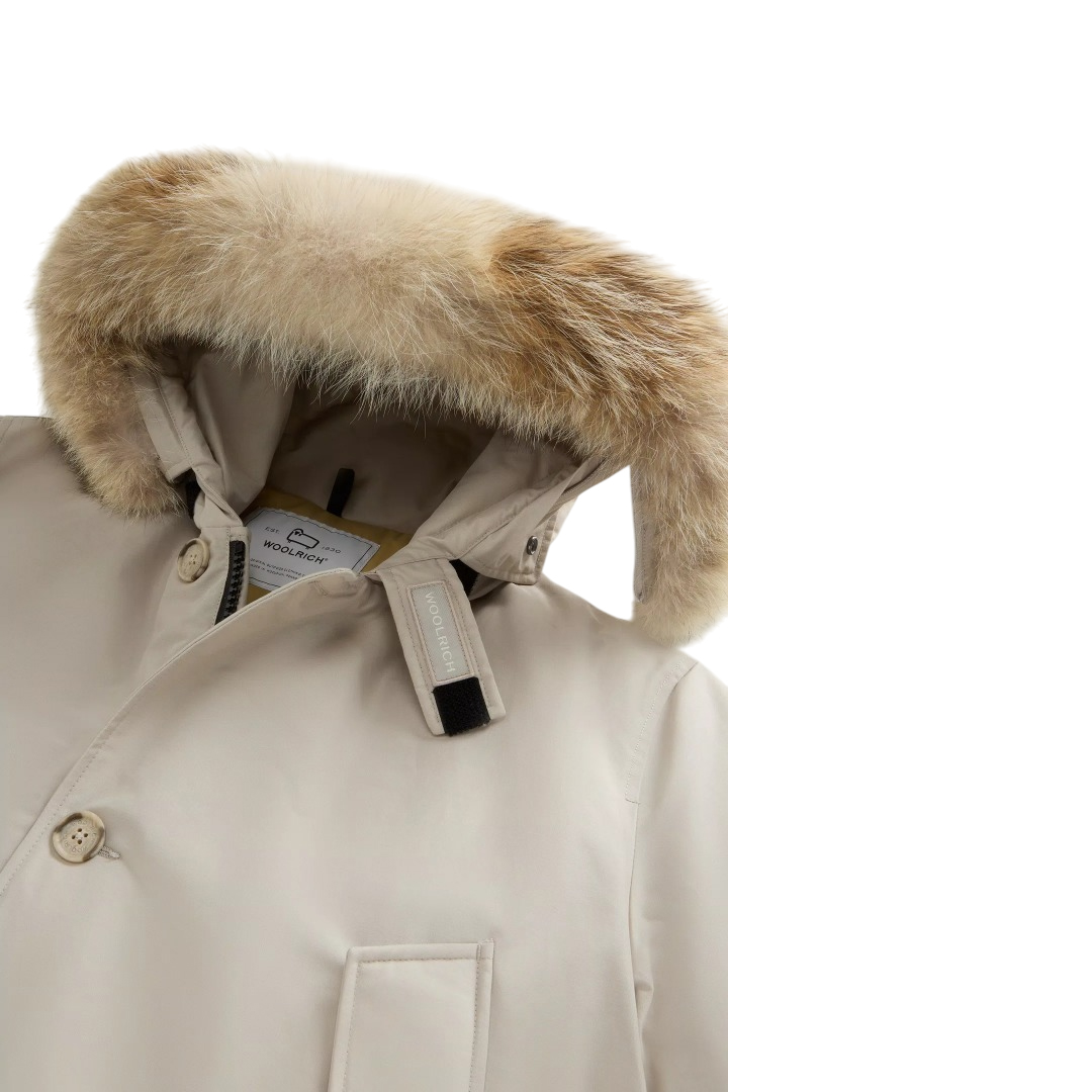 This model with fur insert is designed taking inspiration from the iconic archival garment. In fact, the first Arctic Parka was created in 1972 to protect Alaska pipeline workers from harsh Arctic climates. Made with our signature Ramar fabric, it is reinforced with an innovative Teflon coating for greater resistance to rain and wind and is padded with duck down. The sleek lines of the garment are finished with a detachable fur insert around the hood and a series of pockets to keep essential items close at hand. The pockets are lined with a fabric treated with Polygiene ViralOff® technology, which kills over 99% of viruses within two hours. Made of RDS certified Ramar fabric Water and wind resistant Teflon coating Padded with 80/20 duck down Protective hood with detachable coyote fur insert Zip and button closure Hand warmer pockets Patch pockets with flap and buttons Internal pockets Cuffs ribbed interior Pocket lining treated with Polygiene ViralOff® technology Regular fit Thermal scale: Intense cold -20 ° C / -10 ° C