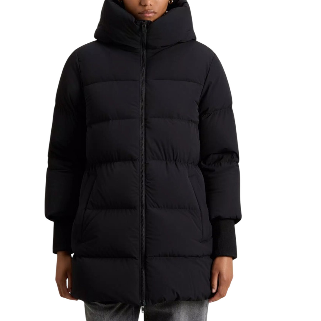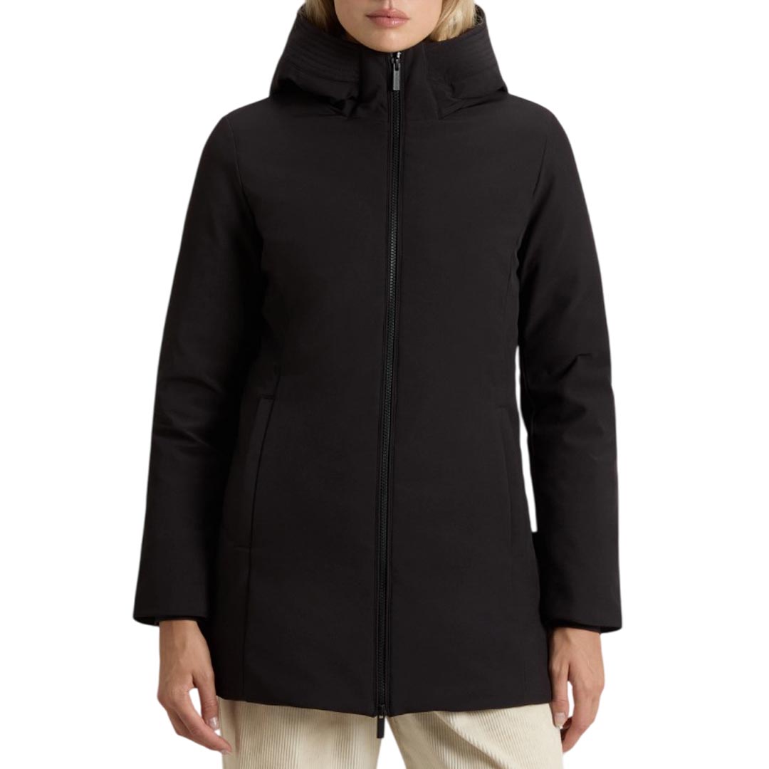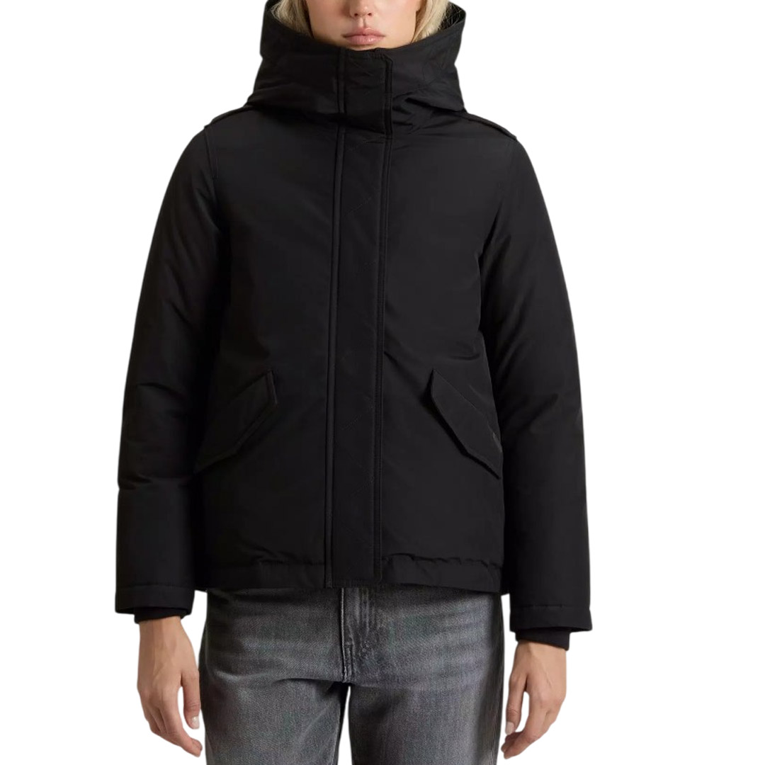 The Luxury Arctic Parka fuses Woolrich's rich heritage with a touch of femininity, revisiting our historic model originally made to protect Alaskan pipeline workers from the harshest climates. This interpretation is made in our signature water-repellent Urban Touch fabric and is padded with duck down and complemented by a large hood. The detachable raccoon fur insert enhances the design with a fine touch, while the large pockets and ribbed cuffs provide additional protection on particularly cold and windy days. The pockets are lined with fabric treated with the special Polygiene ViralOff® technology that eliminates over 99% of viruses within two hours. Made of RDS certified Urban Touch fabric Water repellent Padded with 70/30 duck down Hidden closure with zip and buttons Hood with detachable raccoon fur insert Velcro closure on the neck Oblique pockets with flap Internal ribbed cuffs Pocket lining treated with technology Polygiene ViralOff® Thermal scale: Intense cold -20 ° C / -10 ° C Slim fit