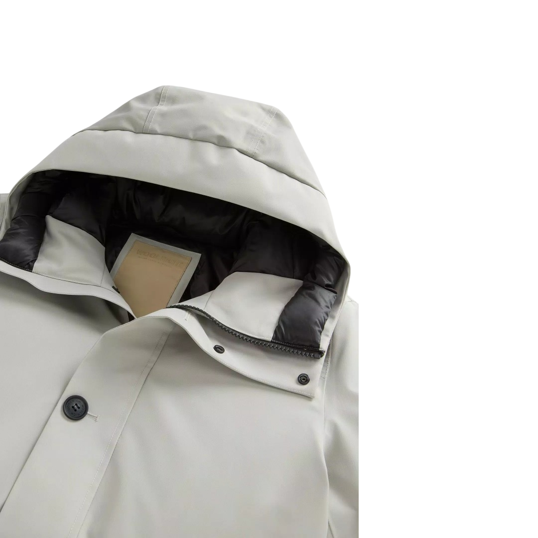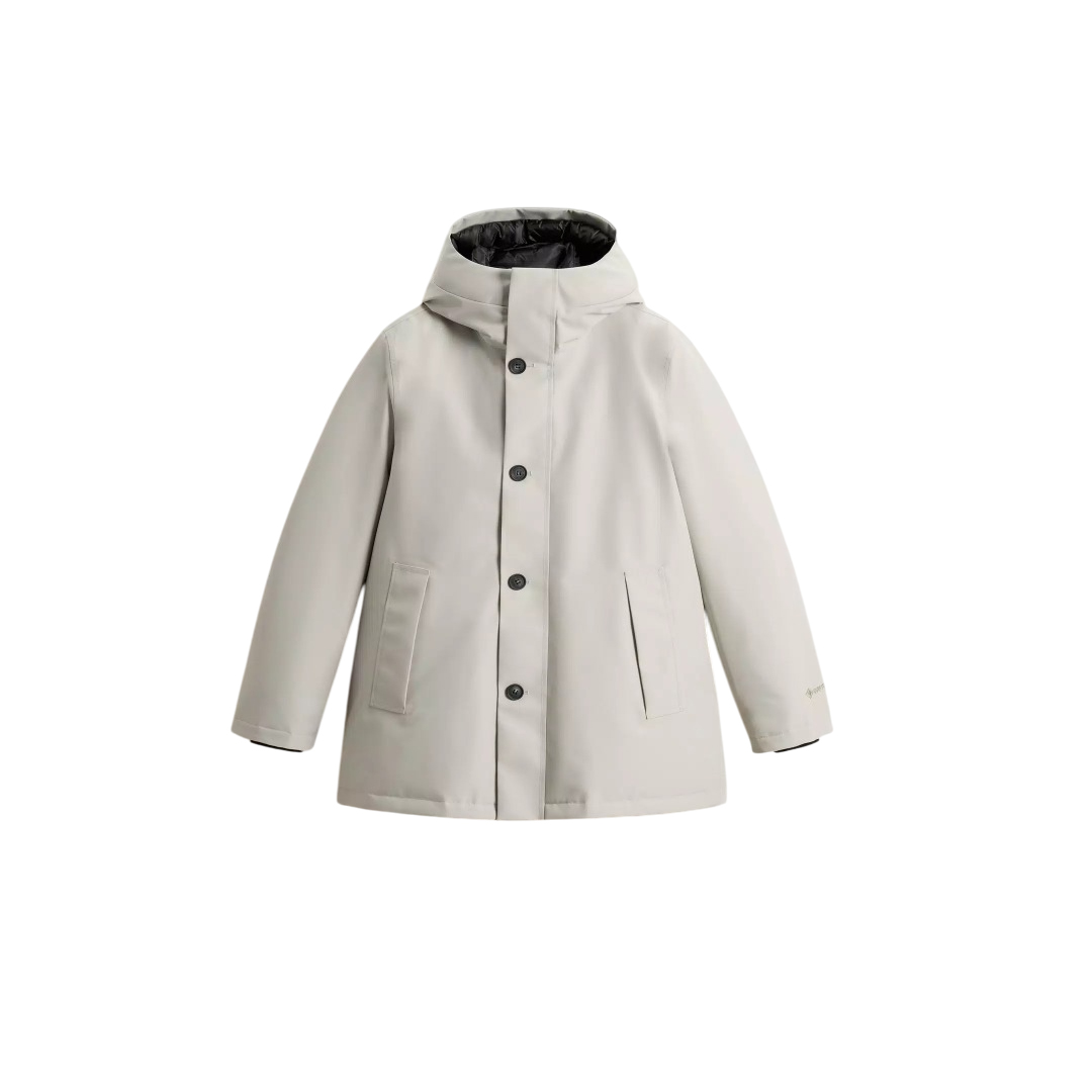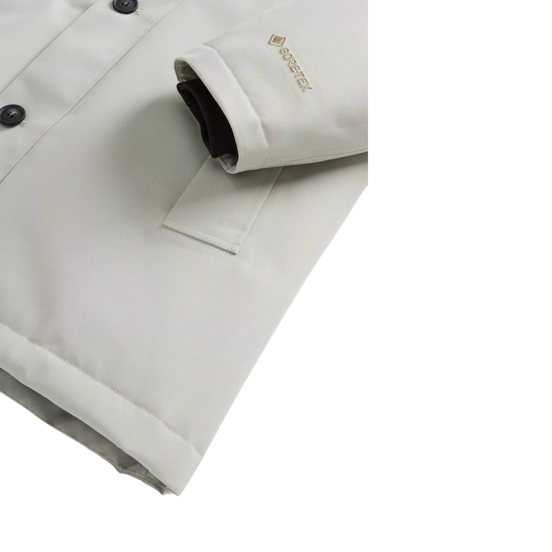 Crafted from 2-layer recycled GORE-TEX fabric, this parka is the perfect outerwear to tackle the cold season without worries. It is windproof, breathable and waterproof thanks to the presence of fully taped seams. The duck down insulation guarantees warmth and softness, while the Chevron quilting on the inside adds a distinctive touch. It has an adjustable hood with visor, a two-way zip closure and buttons and ribbed cuffs. The model is completed by external welt pockets and internal pockets, two elasticated and one with a zip. Made from 2-layer recycled GORE-TEX fabric Waterproof, windproof and breathable Fully taped seams Insulated with 90/10 RDS duck down certified by Control Union CU 884067 Internal Chevron quilting Rear adjustable hood with visor Two-way zip and button fastening Internal drawstring waist Side welt pockets Internal stretch pockets Internal zip pocket Internal ribbed cuffs GORE-TEX print on sleeve Label on side Thermality scale: Medium cold -10 °C / 0 °C