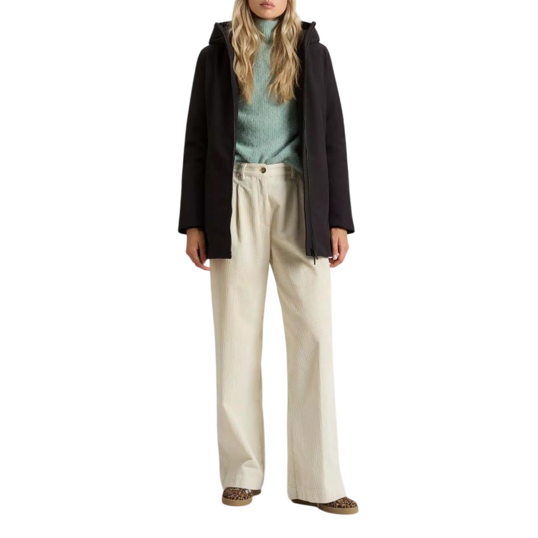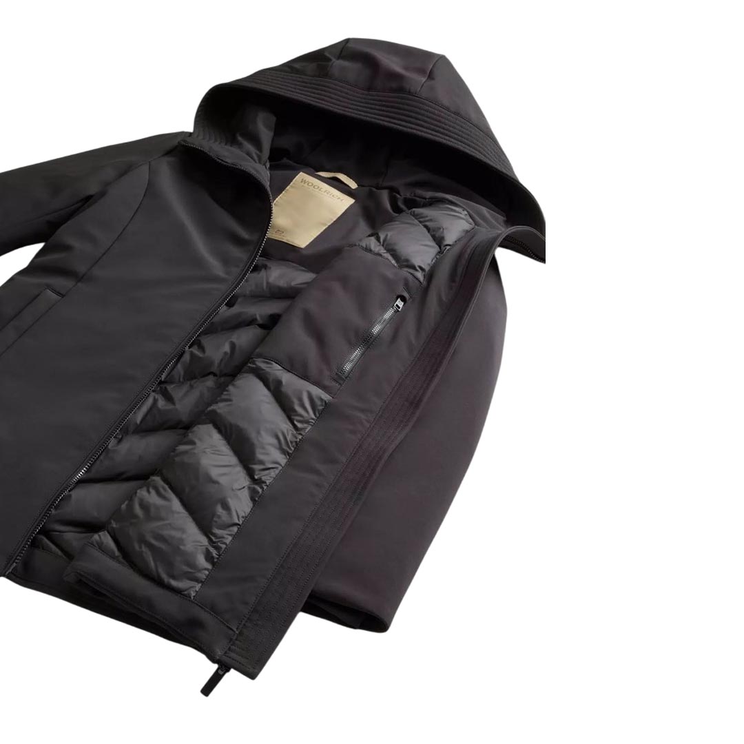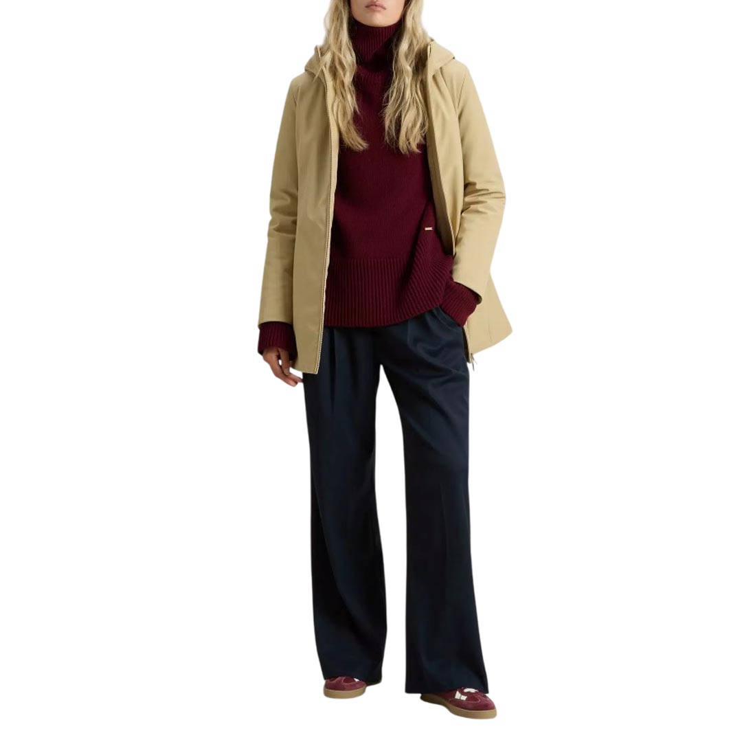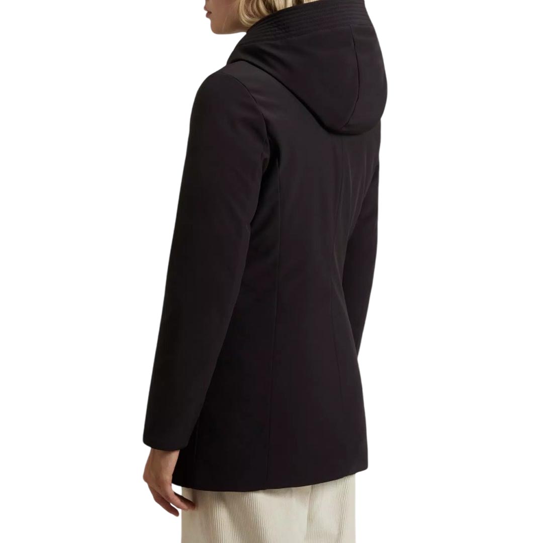 An iconic design with contemporary lines: the Firth Parka combines the elegance of Woolrich tradition with a touch of femininity, thanks to the slender silhouette enhanced by the adjustable internal drawstring waist. Made of Tech Softshell, a water-resistant and windproof fabric, it is padded with duck down and features chevron quilting on the inside. It features a hood and high collar for optimal protection, welt pockets, a convenient internal zip pocket, ribbed cuffs and a side label. Made of Tech Softshell fabric Water-resistant and windproof fabric 70/30 duck down padded RDS certified by Control Union CU 884067 Internal chevron quilting Hood High collar Two-way zip fastening Internal drawstring waist Side welt pockets with zip Internal zip pocket Ribbed cuffs Side label Slim fit